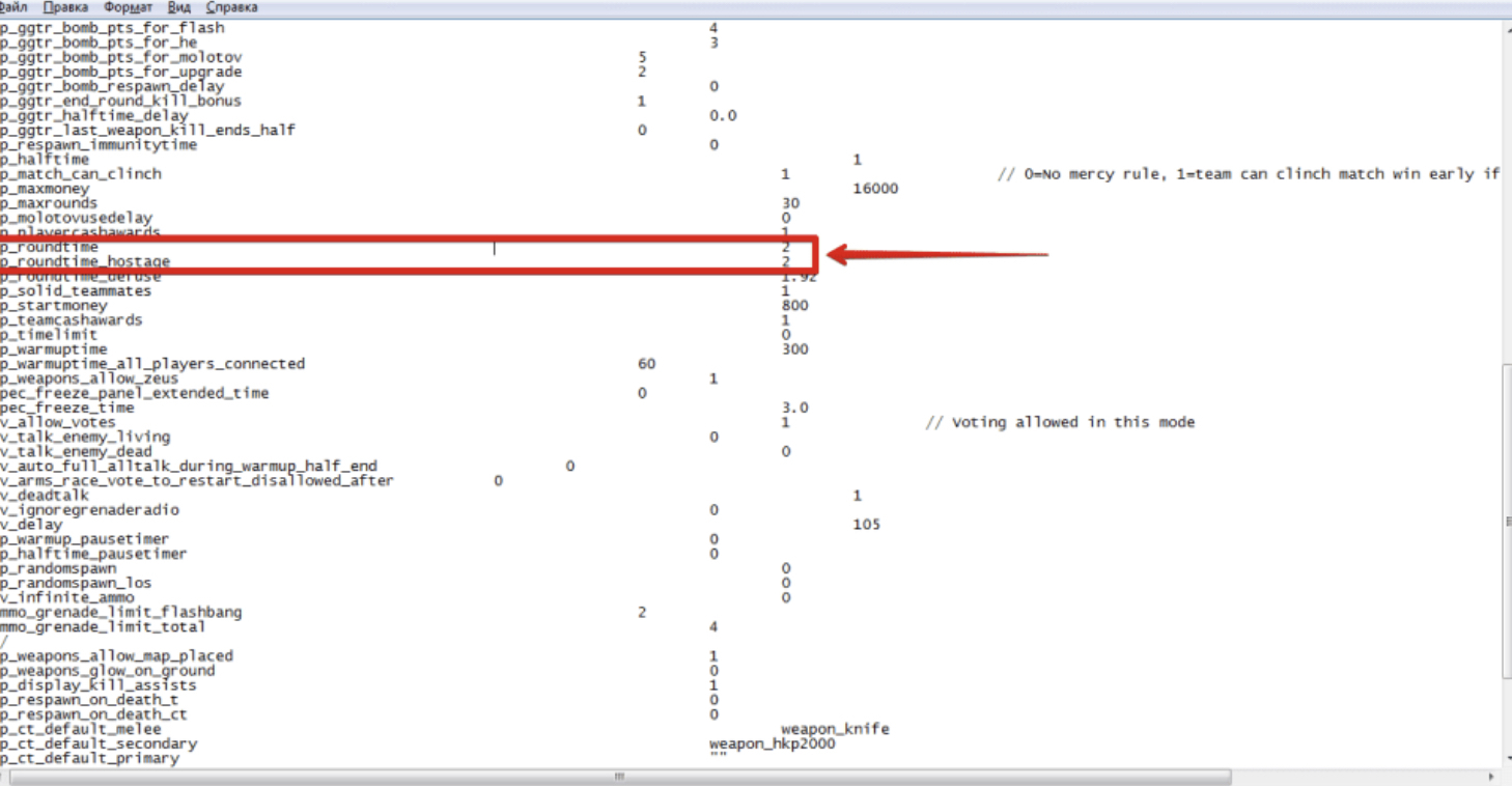 При его применении следует применить следующие настройки: запустить открытие файла задач времени «gamemode_competitive.cfg”, находящийся в: C:\Program Files (x86)\Counter-Strike Global Offensive\csgo\cfg\. Этот файл следует отыскать и выполнить открытие следующих конфигураций: «mp_roundtime2»а также «mp_roundtime_hostage 2».