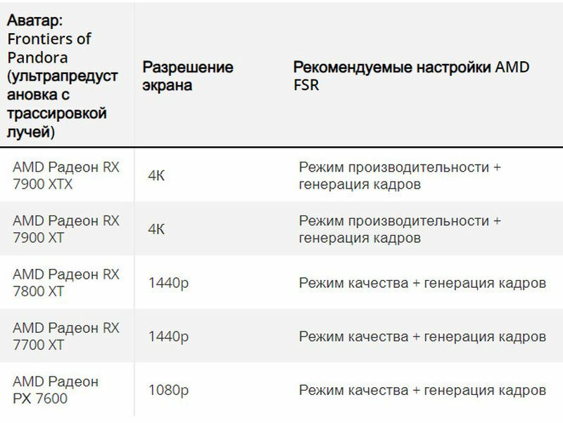 Avatar: Frontiers of Pandora - это настоящая игра нового поколения, которая значительно требовательна к устаревшим видеокартам и даже современным ПК, поскольку трассировка лучей постоянно включена в каждом графическом пресете игры. Однако благодаря технологии AMD FidelityFX Super Resolution 3 (FSR 3) с включенной генерацией кадров игроки могут ожидать более 100 FPS при игре на настройках Ultra в режиме FSR 3 Quality на всех видеокартах серии AMD Radeon RX 7000. Играет ли пользователь в 4K с Radeon RX 7900 XTX и RX 7900 XT, в 1440p с Radeon RX 7800 XT или RX 7700 XT, или в 1080p с RX 7600 - графика AMD Radeon вместе с процессорами AMD Ryzen обеспечивают превосходный и захватывающий игровой опыт.